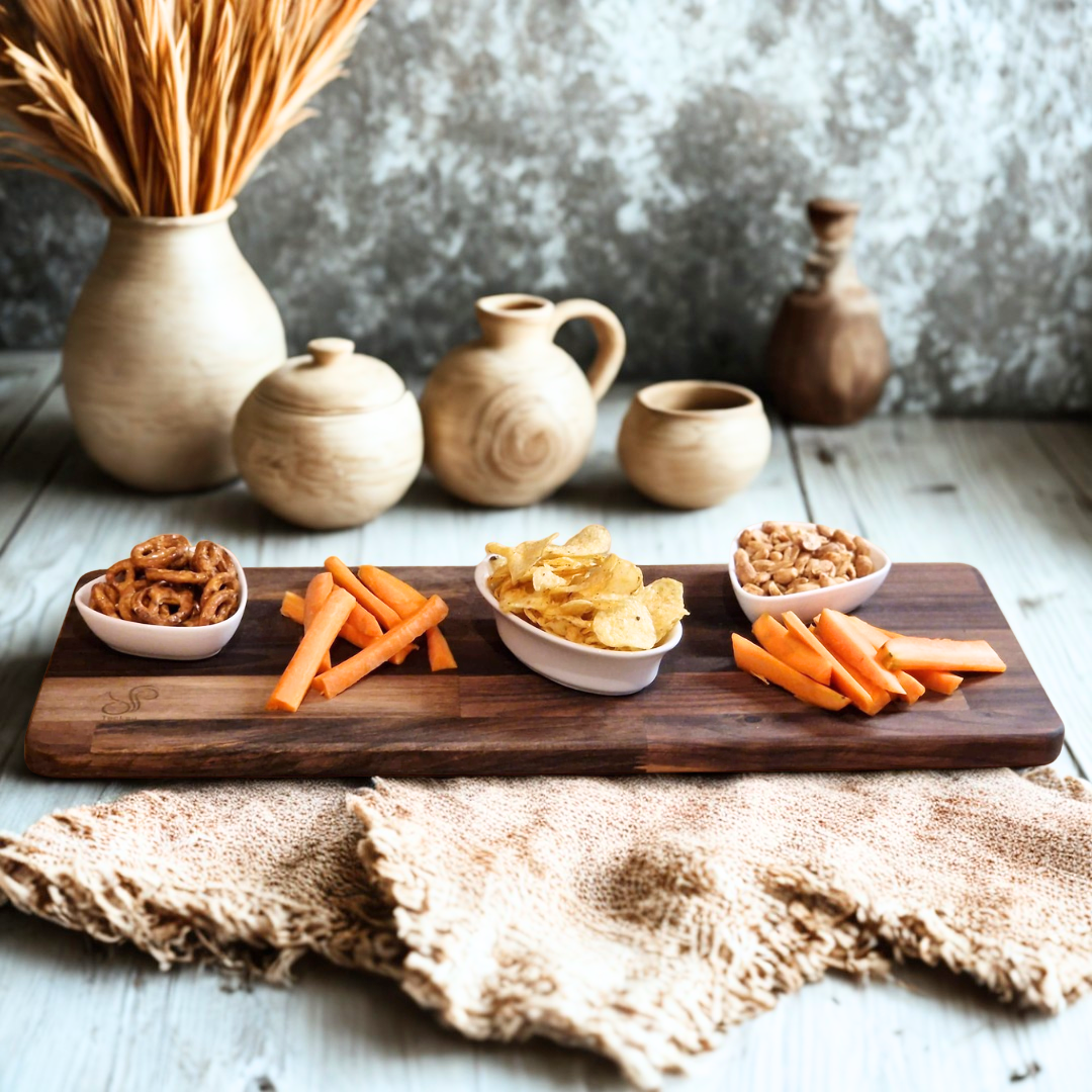 Pensée pour ceux qui souhaitent allier confort et esthétisme, cette planche apéro en Noyer transforme chaque dégustation en un moment convivial, organisé et harmonieux, où chaque bouchée trouve sa place avec style.